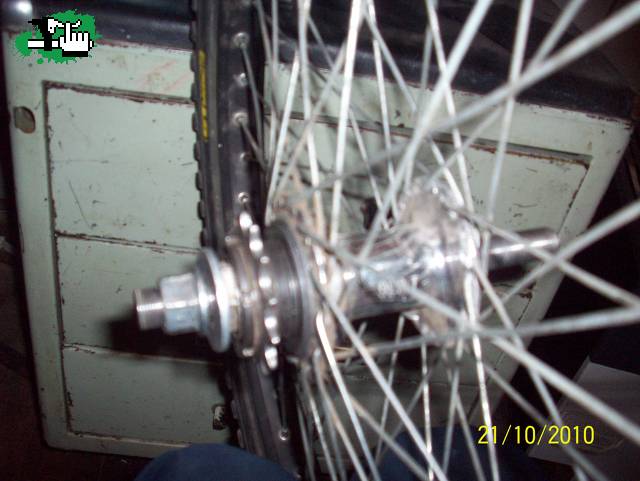trasera: maza joytech con eje de 14 de cromo hueco a rules con cog de 13 carcaza de aluminio es para 48 rayos hay que cambiarle las trabitas nomas una boludes