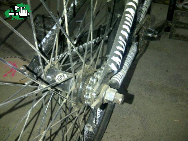 Rueda trasera: Aro supra doms, masa sourthen bike driver 9, rayos fad.
