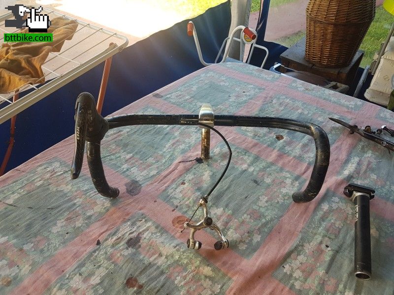 Forma Italmanubri de ruta medida 44 cm. Manija de freno Campagnolo Record de carbono y herradura de freno Weinmann en excelente estado.