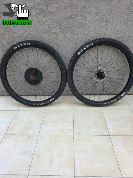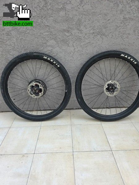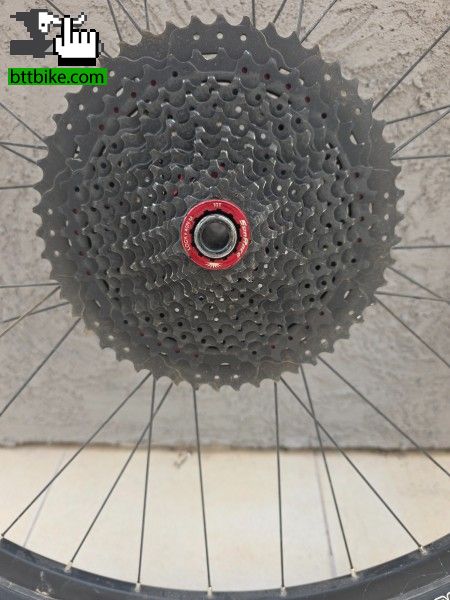 Ruedas de aluminio armadas, discos 160, piñon sunrace 12v ,10 -50 12v