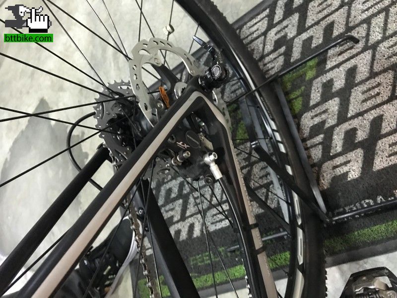 -Cuadro de carbono Raleigh 9.5 con eje trasero pasante de 12mm. (Es un cuadro especial que vino con eje de 12mm atrás y decarrilador para montaje directo al cuadro Side Swing, si ves las otras raleigh 9.5 veras la diferencia.)